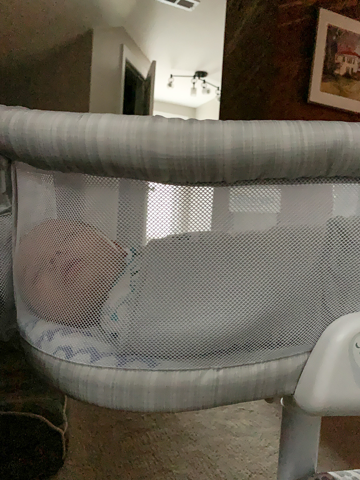 B had his best night of sleep to date this week! 6 hours plus 4 hours with just one nursing session in between. I think he missed his bassinet while we were gone. He wasn’t crazy about it during the first month when he slept in the rock and play, and I was regretting the expensive purchase. But we tried the bassinet again at the one month mark, and now I am SO glad we bought it! I love that he’s right next to me in both proximity and height. He seems to like it too, and he wiggles himself over to the mesh side so he’s as close to me as possible. It’s quite cute!!