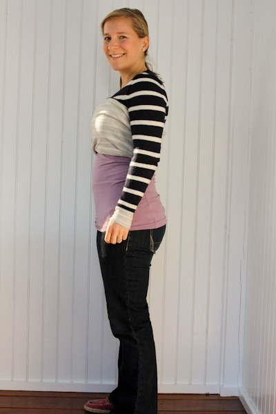 I got out my old maternity clothing from the basement only to find that all of my jeans were FLARE leg!! I’m talking 70s bell bottoms. How times have changed! I felt like I was swimming in fabric, and I ran to buy a few pairs of maternity skinny jeans right away.