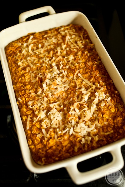 Grammie Buzz played with Maze while I made us both baked pumpkin oatmeal : ) I added some coconut to the topping instead of brown sugar, and it toasted perfectly in the oven!