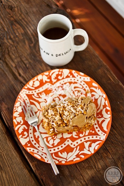 Topped with sunflower butter and more coconut.