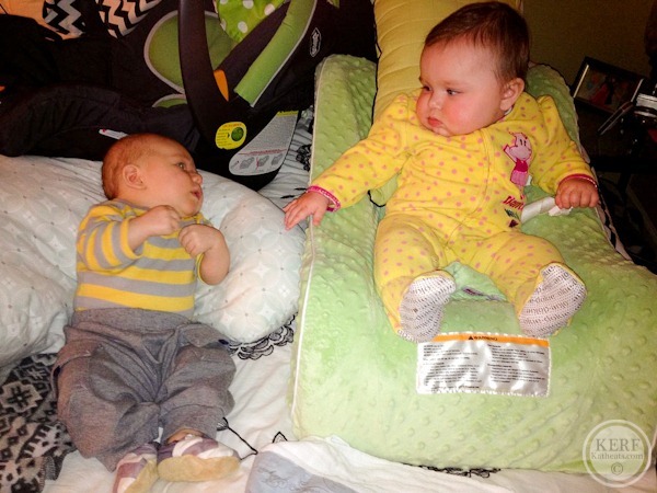 Our sweet baby was upstairs with his first babysitter and his friend Sylvia. I was able to go up and feed him when he needed me. They had a fun time playing together!