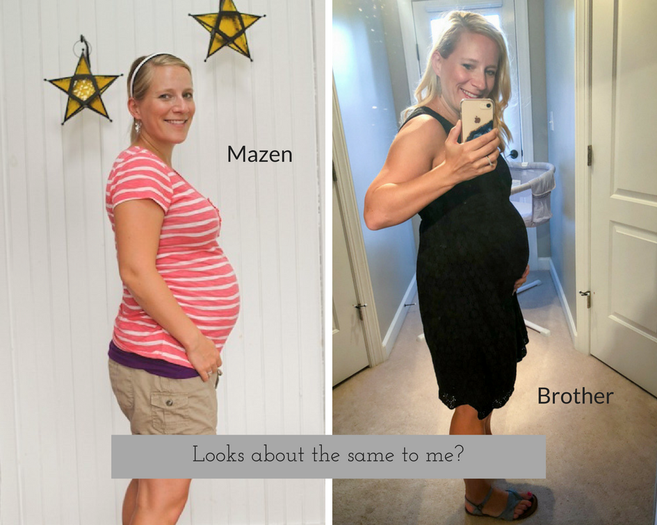 I haven’t had any of the rib pain that I had with Mazen yet. I am thinking that due to this being my second pregnancy, everything is more relaxed out and less pulled in and up, so my bump is lower than last time and outside of my ribs instead of up under them. Unless the rib pain is coming soon… dun dun dunnnn. I’m pretty sure I was in the thick of it this time last time.