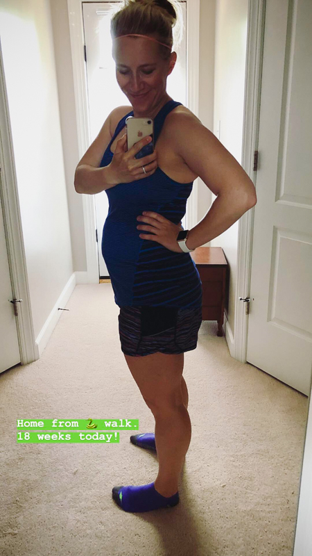 I gained 4 pounds between 10 and 14 weeks despite my nausea getting so much better during that time. I was kind of scared to see what would happen at 18 weeks, but I actually lost a pound! I’m guessing that’s my body balancing out a bit after the yucky first trimester and it’s a sign that the activity and eating well has paid off. I don’t mean to celebrate pregnancy weight loss since this season is about the baby growing, but I was very happy it wasn’t another large gain in a month. I think my body packs on the most pounds at the very beginning and the very end, which is what happened with Mazen too. I’m going to try not to have the “what the hell” attitude about eating in the last month and eat all the ice cream later this summer!