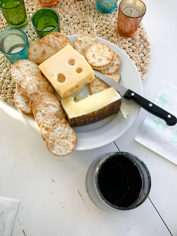 After showers we had cocktail hour in Grammie and Pea’s room – cheese and wine.