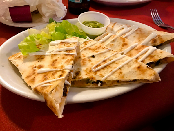 I ordered a seafood quesadilla, which was just OK, had a beer and ate too many chips.