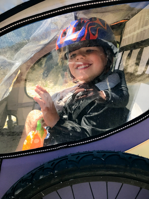 Mazen chose to ride in the chill-out trailer again, but I think next time we’re here he’ll be ready for the kids’ tandem bike!