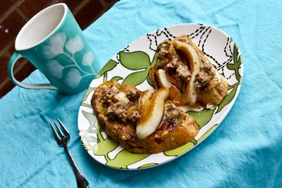 Ohh this looks amazing – reminds me of this bananas foster french toast I got up in Maine a while back. Sooo delicious.