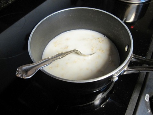 I made a pot of oatmeal for the group. Rolled oats with a pinch of salt, cinnamon and blueberries.