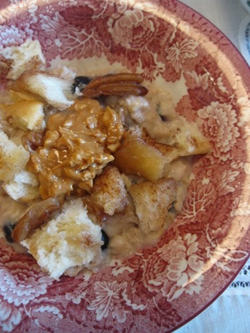 I would never have thought about putting a sticky bun on top of my oatmeal. That makes breakfast the best of both worlds…sinful sticky bun with healthy oatmeal. Yum!