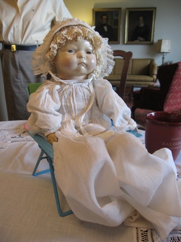 That doll reminds me of one that my Mom has from growing up. Dolls were much different back then weren’t they?