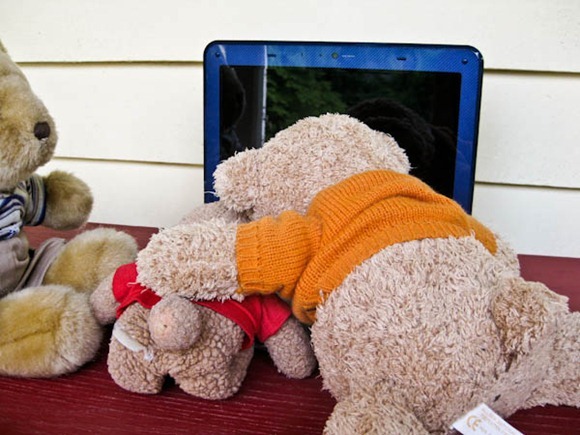 I love that the bears have a netbook. Start em young. Or furry. With technology. lol
