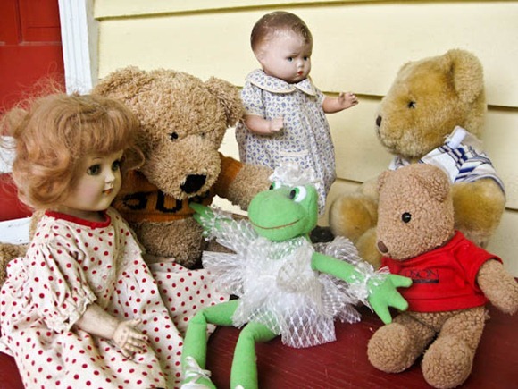 I love how the baby doll in the very back of the group picture looks slightly disturbed…lol! The saga of the bears is always my favorite…I have always loved my bears!!