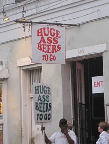 I lived in New Orleans for a few years, and I must say, I also have a picture of the “huge ass beer” sign”. Tickled me, too.