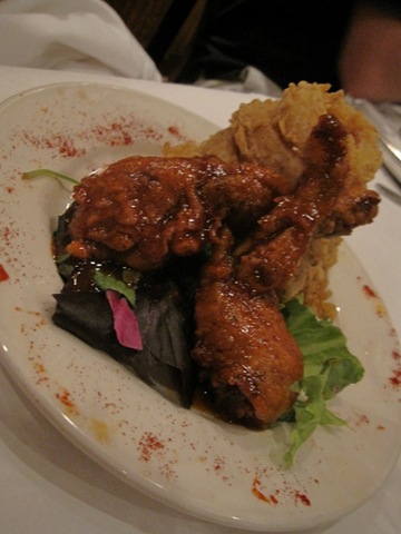 We wanted to do the food all traditional New Orleans, so Matt ordered the Frog Legs. I had a bite โ just like chicken! The spicy sauce was actually quite good!