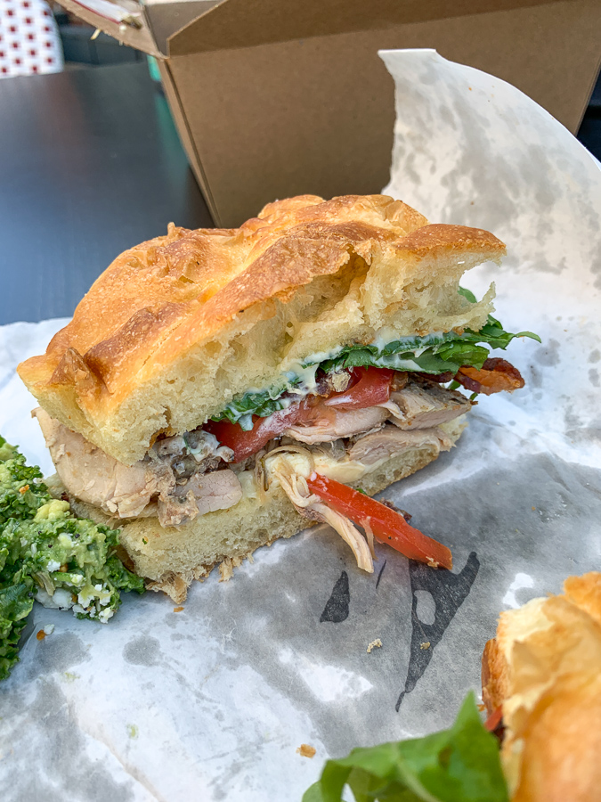 We shared a sandwich and kale salad, and both exceeded expectations. Our club sandwich had real chopped chicken on homemade focaccia that was incredibly buttery (and I believe made in house). And the cheese – whatever it was it did not say – was anything but boring. I think it may have been a relative of brie.
