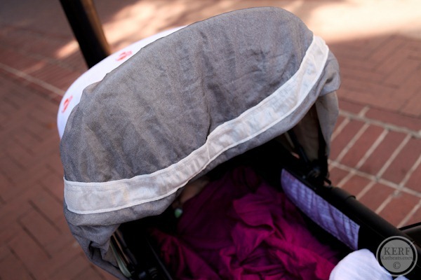 I feel bad for being hard on the Bugaboo at first because I am realizing that what it lacks in portability it makes up for in accessories. I pulled out the sun shade when I started to realize how hard it is to be a baby lying down with the sun at a 45* angle in your eyes and was so happy to have this! M doesn’t love his strollers – he prefers to be carried – but we do both when he’s willing to nap in them.
