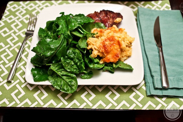 We cooked NY Strip steaks on the grill and served them with my mom’s macaroni and cheese and a green salad.