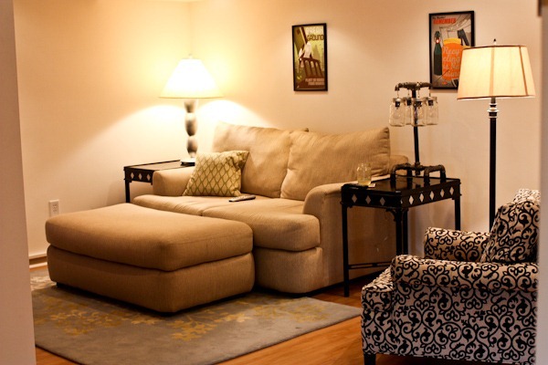 Iām glad to have a nice basement space to do workouts. I just moved the ottoman out of the way and lit all the lamps for a more cheerful brightness.