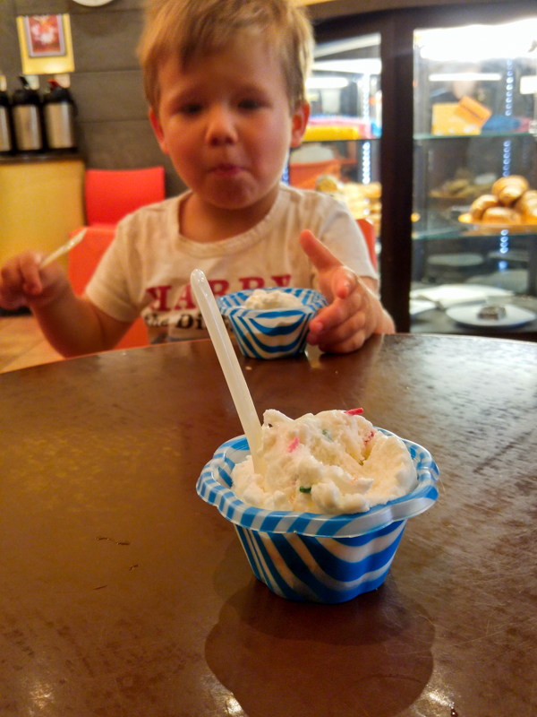 We went to get ice cream in the stroller for a treat, and he fell asleep on the way home (a rarity!)