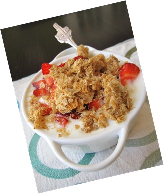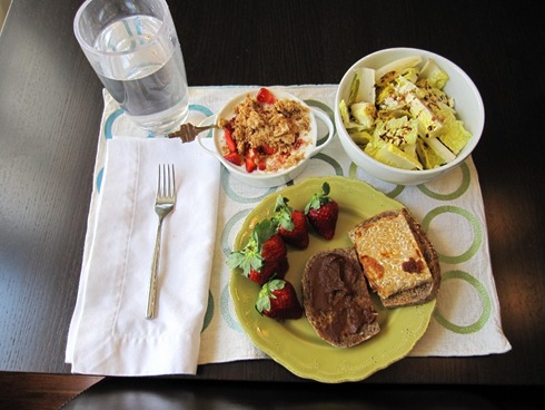 I also prepared this yogurt, strawberry and Weetabix bowl (Jenna reminded me I’ve had an open box of these in our pantry since before KERF was created!). However, I did not eat this because I felt full when I finished my other two. It’s in the fridge to have around 5:00 if I need it. (I just got the new Windows Live Writer and it’s awesome! Not only do things automatically link for me, but I can tilt photos and do a few more cool things 🙂 )