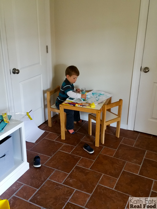 A little art project later in the afternoon. We have a mud room in our lower level that works perfectly as a kids art studio!