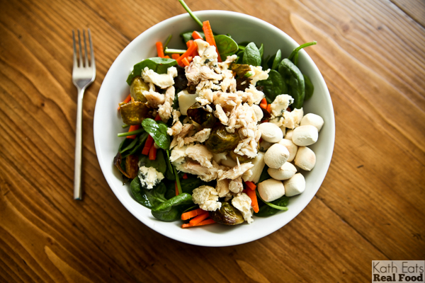 We came home for lunch and I made a big salad with greens, hearts of palm, leftover brussels sprouts, two kinds of cheese and smoked trout on top. And those little nuggets on the right are some wine crackers I bought at First Colony last week! SO GOOD – sweet and crunchy!