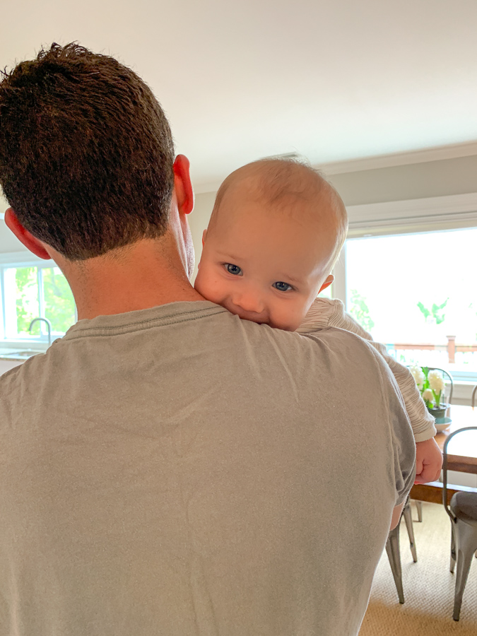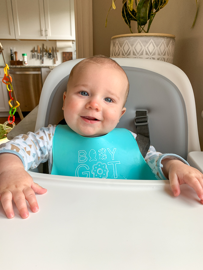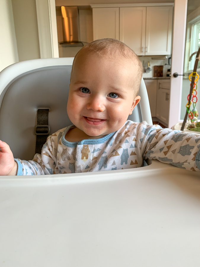 I don’t like it when people say “he’s an easy baby” because I don’t think ANY baby is “easy.” However, Mr. Birch is pretty laid back and happy most of the time. (His big brother was a lot more intense/strong willed from the get-go!) Birch has been a decent night sleeper, a great napper, and full of smiles. He only really cries when he’s tired – and on long car trips