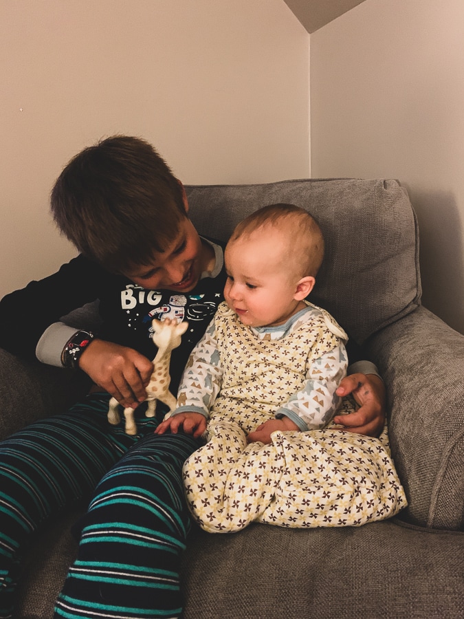 I have also loved giving Mazen more independence with Birch, such as reading him a bedtime story all by himself. And when Birch does something funny – like laughs at Mazen’s book – Mazen will look at me with total amazement and a huge grin that he got a reaction out of B. This will probably only get better as they both get older! Imagine when Birch can run after Mazen and play games.