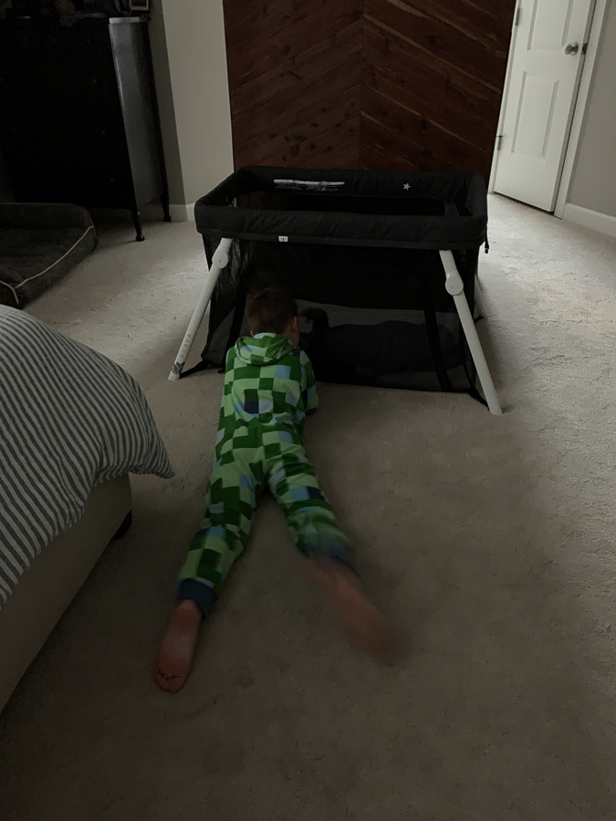 After he learned how to roll over I felt that his bassinet was probably too small and also contributing to mediocre sleep and we switched to the Lotus Travel Crib in our room. If he hadn’t slept well in the Lotus I was considering just moving him to his crib for nights, but it’s such a hike to the nursery from our room that I wanted to hold off if at all possible.