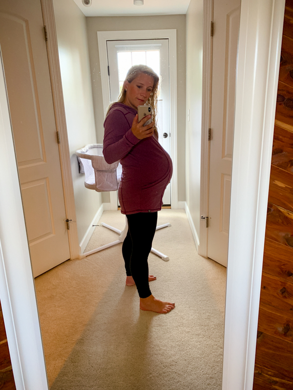 I noticed that Birch was moving around a TON in there. I had been convinced in the days prior that he was in a less-than-ideal position to drop into my pelvis, so I had been doing positions from The Miles Circuit to hopefully help him get in a better spot.