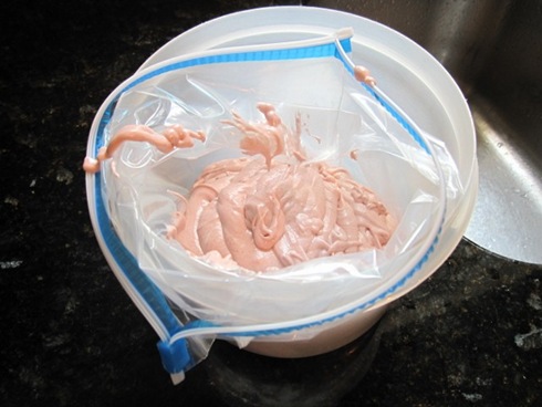 Ready for piping. I had a little trouble with it being too runny. A little refrigeration helped, but it’s still on the slidey side.
