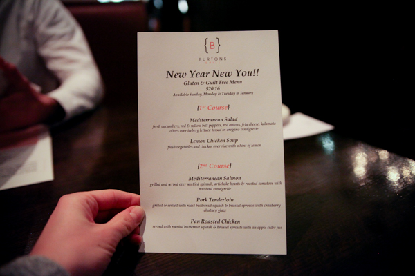 Burton’s Grill in town is always so friendly to me and invited us in to try out their New Year New You menu.