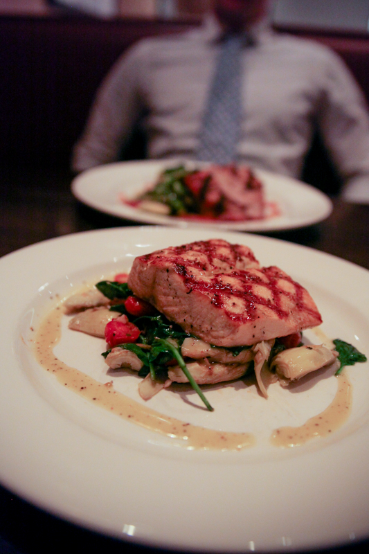 We each tried a different entree as well – Mediterranean Salmon for me with artichokes, roasted tomatoes, spinach and a Dijon sauce. Loved it!