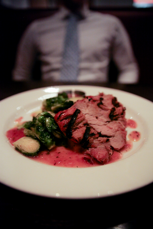 Pork Tenderloin for him with butternut squash, brussels and a cranberry chutney.