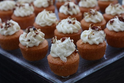 That dress is so cute!!! I can’t stand eating a bunch of bite-sized things when all I want is a sit-down meal. The food still looks wonderful though! I’m intrigued by the carrot cake caramel and tomato cupcakes!
