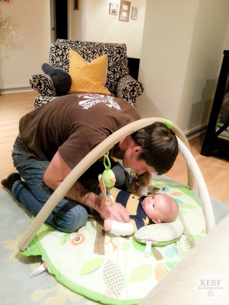 We had more good timing this afternoon as M took a long nap in his swing while I had a 2pm freelance project possibility call. And then we played for a while when he woke up.