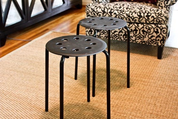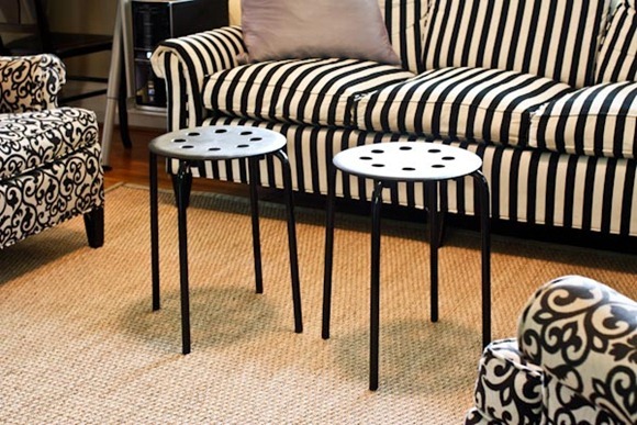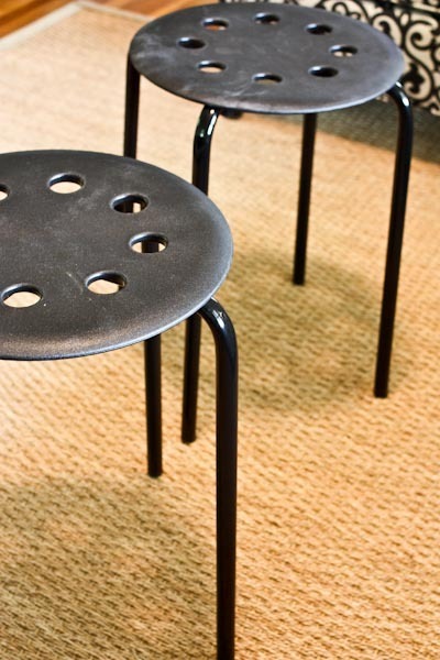 When we moved from Charlotte, we sold our old Target table and bought two $5 stools from IKEA that I loved for their modern, simple look. They float around the room for feet or coffee.