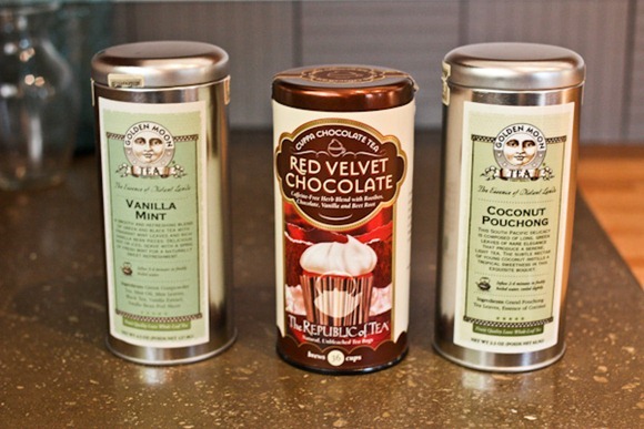 Three more teas I’ve been into – Golden Moon’s Vanilla Mint + Coconut Pouchong (maybe the coconuttiest tea ever? It’s not black though, so it’s weaker) and Red Velvet – caffeine free and good. These two Golden Moons were recently on sale on OpenSky.