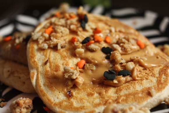I love how this Halloween inspired breakfast looks. Really makes me want some pancakes!