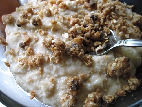 Supercharging Oats are the perfect start to a big day. This bowl has 1/4 cup oat bran, 1/4 cup quick oats, 1/2 banana, 1 cup H20, 1/4 cup unsweetened almond milk, 1/2 scoop vanilla protein powder, and Supercharge me cookie dough (probably a tiny bit less than 1 cookie worth of dough). The Supercharge Me cookie recipe is from ED&BV and is listed on Dreena’s Blog.