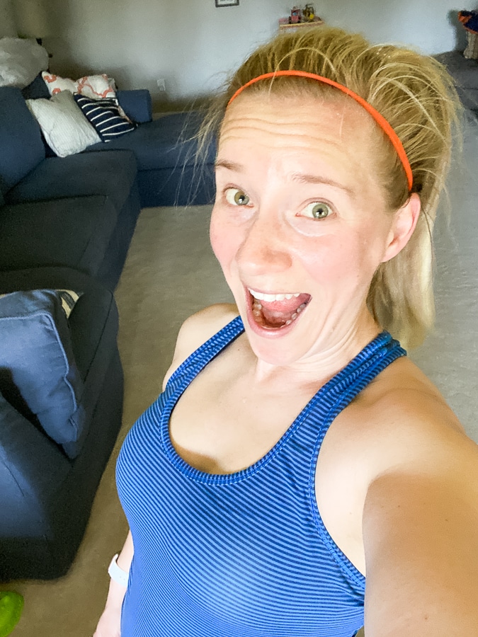 I’m alternating days of indoor HIIT/strength (during nap or when T can watch the boys) and outdoor run/walk workouts with them. I’ve been doing a mix of Chris Collins Fitness, Popsugar, and outdoor walk/runs. My poor foot is actually quite strained from all the activity, and I decided to take a day off to do some flow yoga. I searched You Tube and found a good 30 minute power flow and realized after a few minute I knew the yogi – PB Runner!!