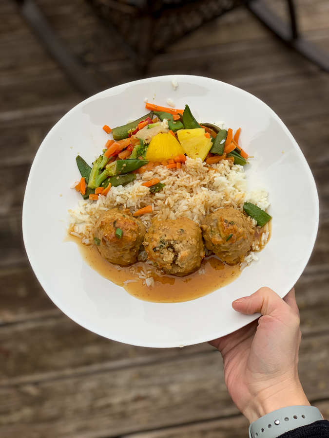 We had teriyaki meatballs from Plenty this week. Loved that yummy sauce all over everything!