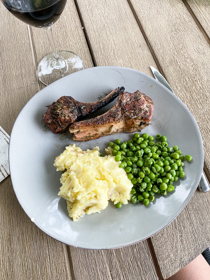 Delicious grilled lamb prepared by Thomas plus mashed potatoes and peas!