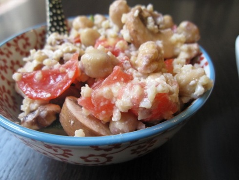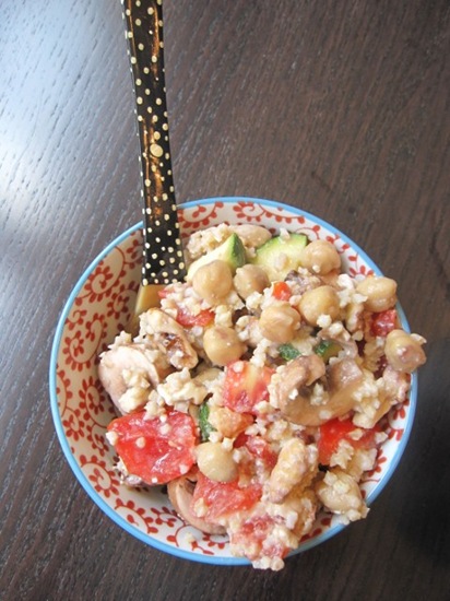 After a satisfying workout, it made sense to eat my leftover millet + bean salad from last night