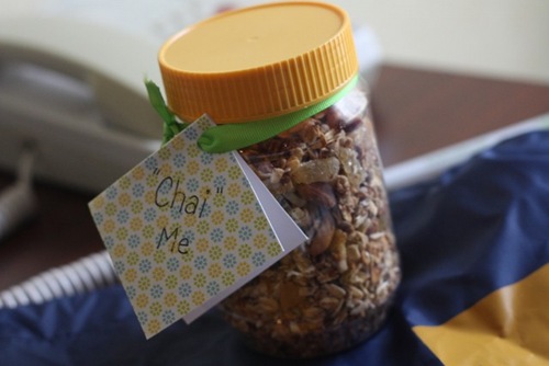 And she also brought some of her homemade Chai Granola. I took a nibble – SPOT ON chai flavors!! Can’t wait to have this on yogurt and oats! HERE IS THE RECIPE. She also brought me a sample of her Nutty Butter, only after we discussed it at our meet-up and she decided I needed to try it. So far I have only smelled it, but I cannot WAIT to dig in!!! RECIPE HERE!