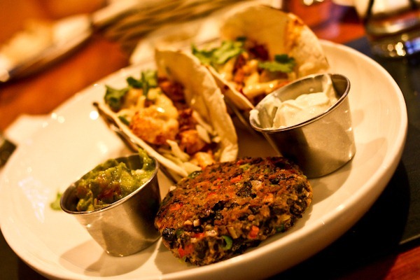 For dinner I ordered the fish tacos, which came with a black bean cake