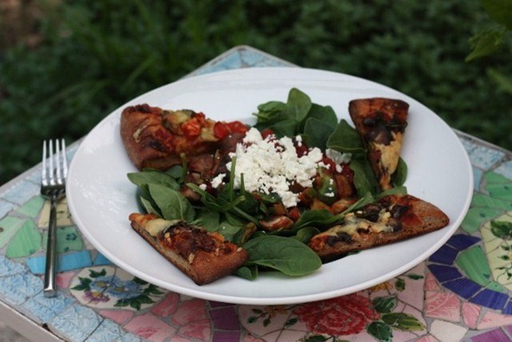 My pizza salad consisted of 4 tiny slices of leftover homemade pizza heated in the oven (the only way I’ll eat leftover pizza)