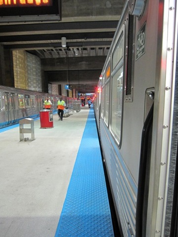 The platform is a bit confusing, but my advice is to follow the people who look like they know what they’re doing. I did and found a train ready to depart. ALL of the trains are leaving O’Hare (since it’s the last stop) so you really can’t get on the wrong one. Look for one with open doors!