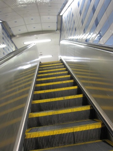 At the bottom, you’re spit out to moving escalators. Hop on or walk!