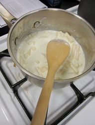 K and I were also assigned to a Four Cheese Sauce Recipe (with cream = not low-cal!)